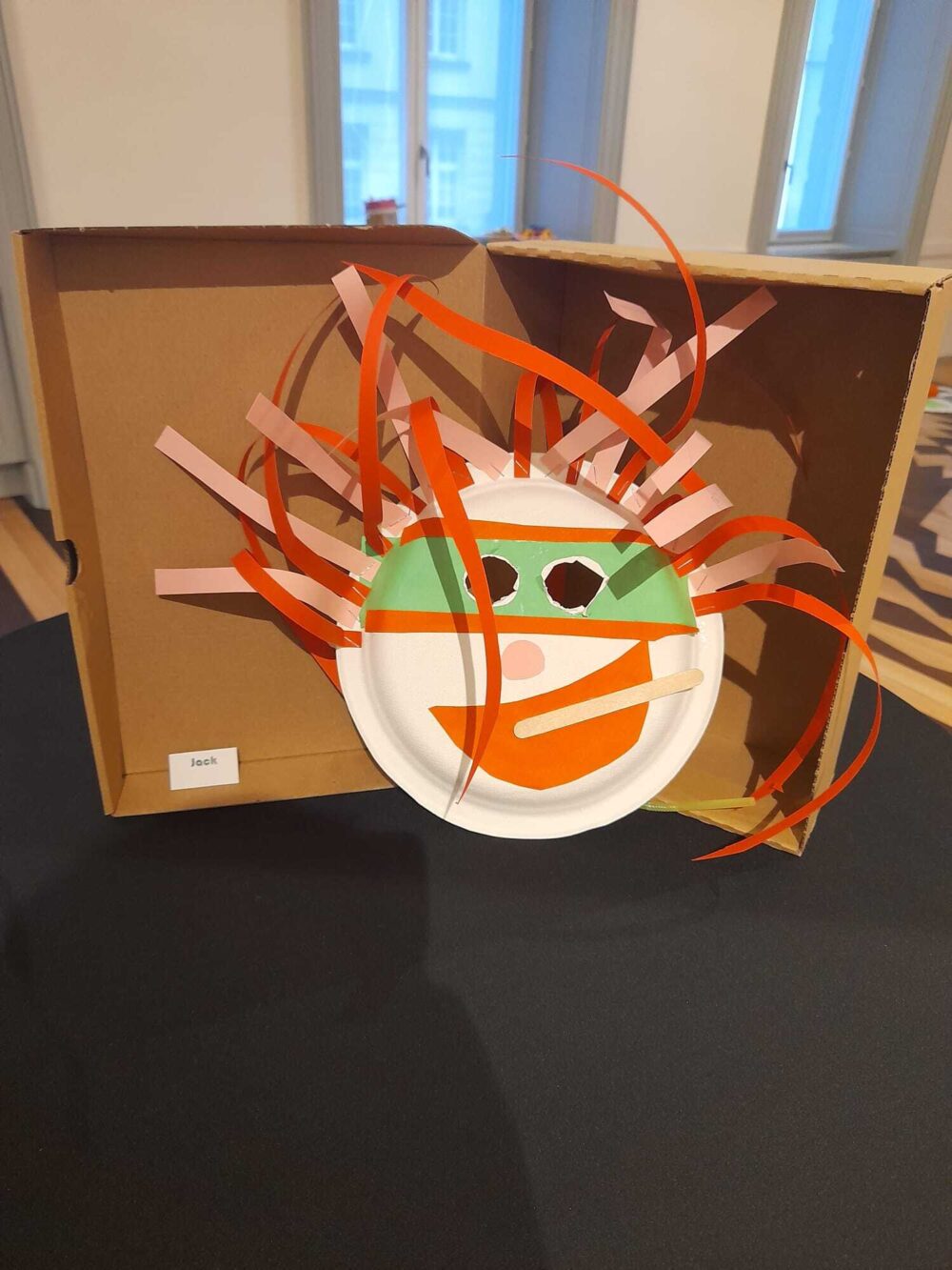 Xenia Lampe from the Joost-e-Fien daycare centre (Sint-Joost-ten-Node) put together craft bags with her assistants. These contained all kinds of basic materials that are standard fare in nurseries. The bags were put together based on intuition, so the contents varied slightly from bag to bag. "Without instructions on what exactly to make, but with a clear request to create something together with the children, we gave these packages to the parents when the nursery closed for the summer. Most of them made a craft project with their child. The fact that there was going to be an exhibition also served as a trigger."