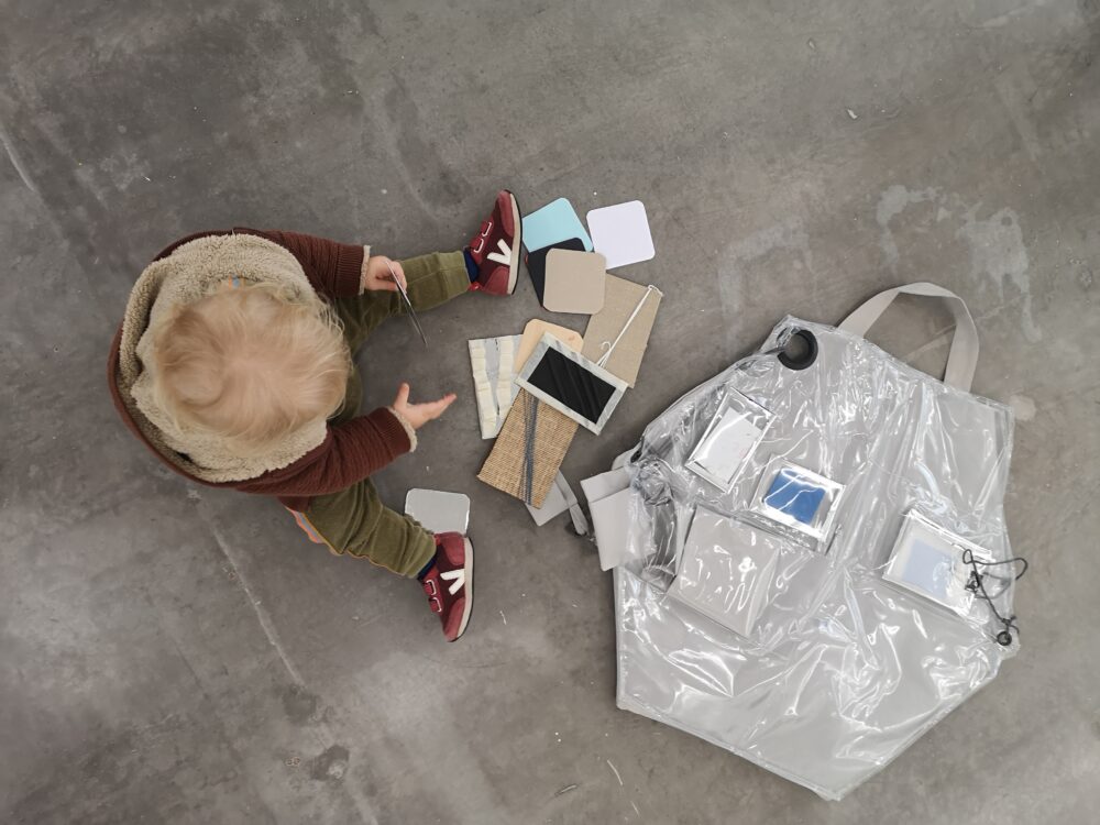 WIELS has a long tradition of working with the very youngest. For a number of years, there were 'May babies', weekends in May when special guided tours and workshops were organised for families with younger children. Due to the intensity of this, it was decided to experiment with a different approach that also included a direct and permanent link with current exhibitions. The Baby Bags came about in a similar way: they were developed over a number of years and then integrated into the regular programme. Baby Bags are a kind of bag/blanket/cushion that parents of children aged 10 months and older can take with them during an individual visit to one of the exhibitions. They were designed by artists Lucie Burton and Nathalie Arnaud and contain objects that stimulate the senses (a piece of string, a musical instrument, a stick of liquorice, etc.). The contents vary depending on the exhibition. Baby Bags are available free of charge and help children explore the exhibition in a different way.